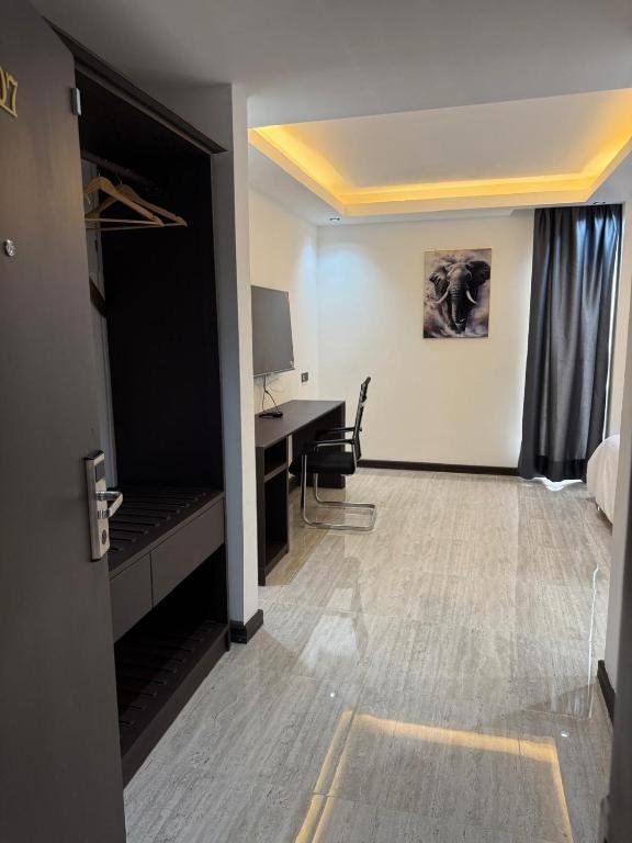 Each room is designed for comfort and includes air conditioning, flat-screen television, private bathroom, work desk, balcony, and high-speed internet, making the hotel suitable for both short visits and extended stays.